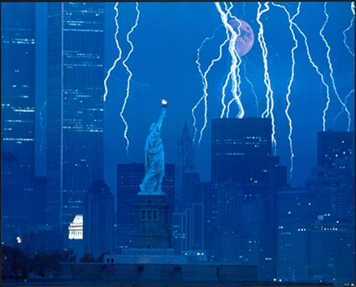 New York City Skyline in Lightning Storm Featuring: Twin Towers & Statue of Liberty Art Print 16x20