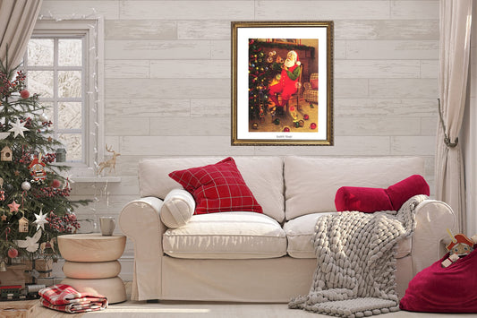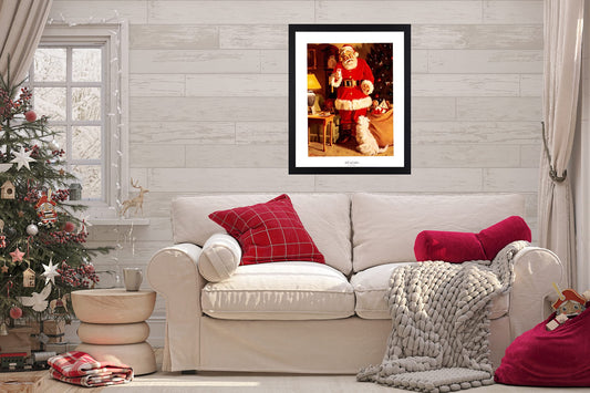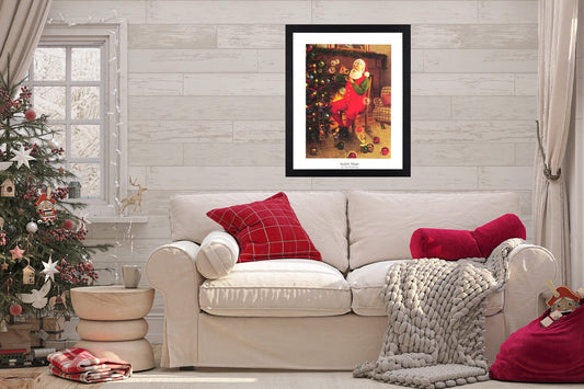 Old St Nick Santa Clause at Home Tom Browning Christmas #5 Art Print Black Frame + GLASS 19x23" Perfect for Festive Holiday Fireplace Mantel