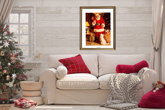 Old St Nick Santa Clause at Home Tom Browning Christmas #5 Art Print 16x20 Honey Frame Real Glass