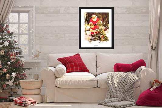 Old St Nick Santa Clause Decorating Outdoor Pine Tree with Elves Tom Browning #7 Christmas Cherry Framed Picture Art Print 16x20