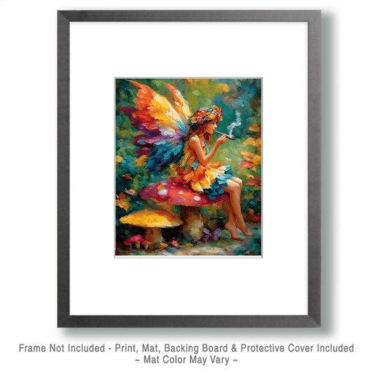 Fairy Hippie Sitting on an Amanita Mushroom Art Print - 8"x10" Artwork for 11"x14" Frame