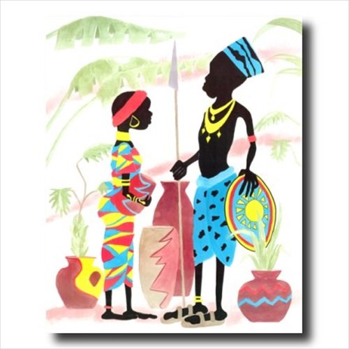 African American Black Tribal Man and Son Picture Black Framed Art Print