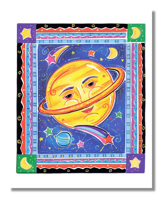 Celestial Sun w/Planets Moon and Shooting Stars Wall Picture W/G Matted Framed Art Print