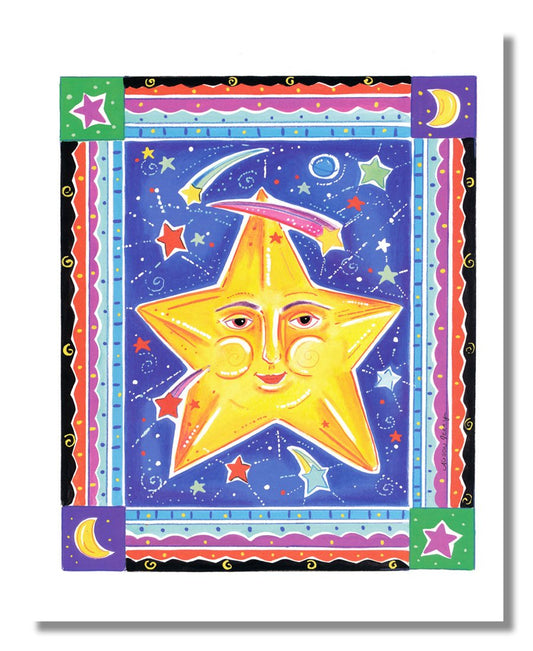 Celestial Star w/Planets Moon and Shooting Stars Wall Picture W/W Matted Framed Art Print