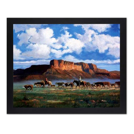 Cowboys Horses Cattle Western Landscape Animal Wall Picture Art Print 16x20 (with Frame Options)