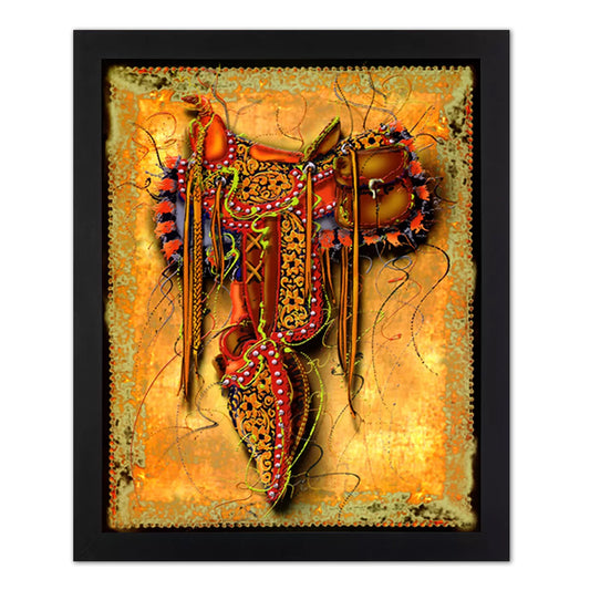 Western Rodeo Cowboy Saddle Contemporary Wall Picture Art Print (with Frame Options)