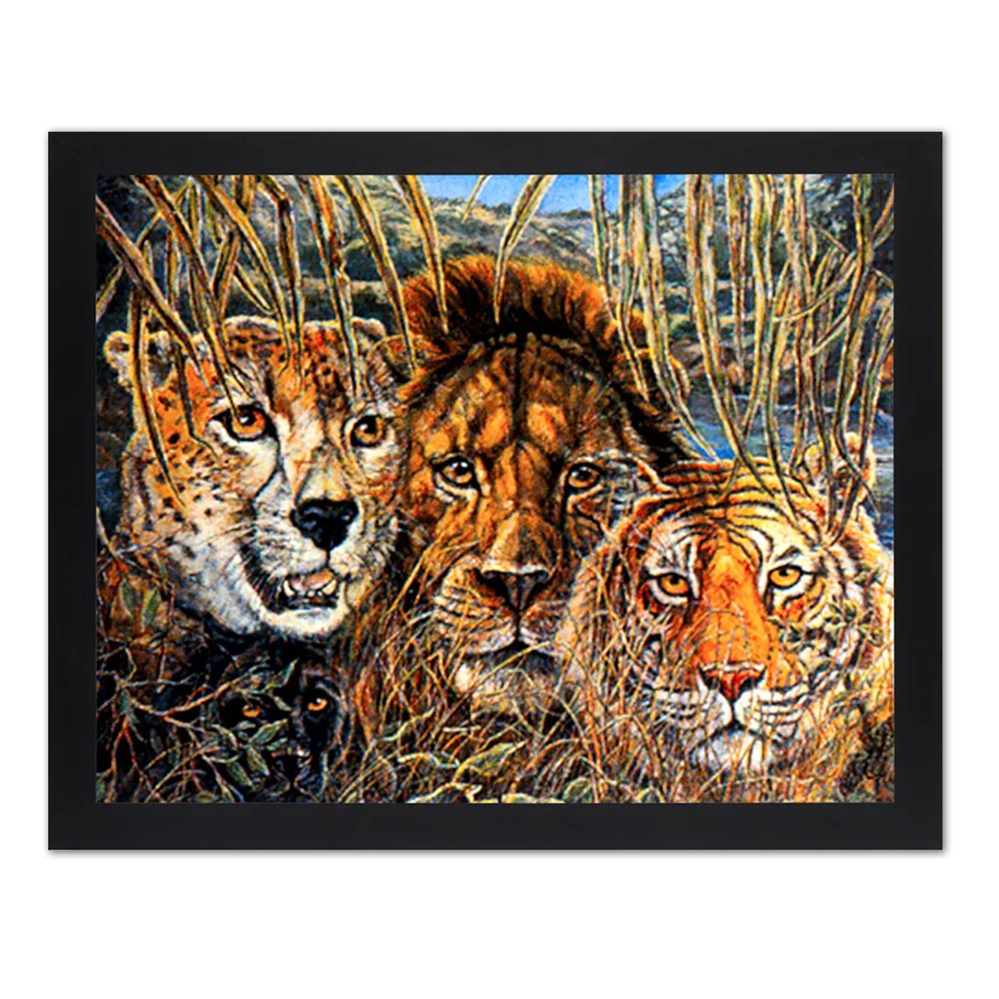 African Savannah Cat Phases Lion and Tiger Wall Picture Black Framed Art Print